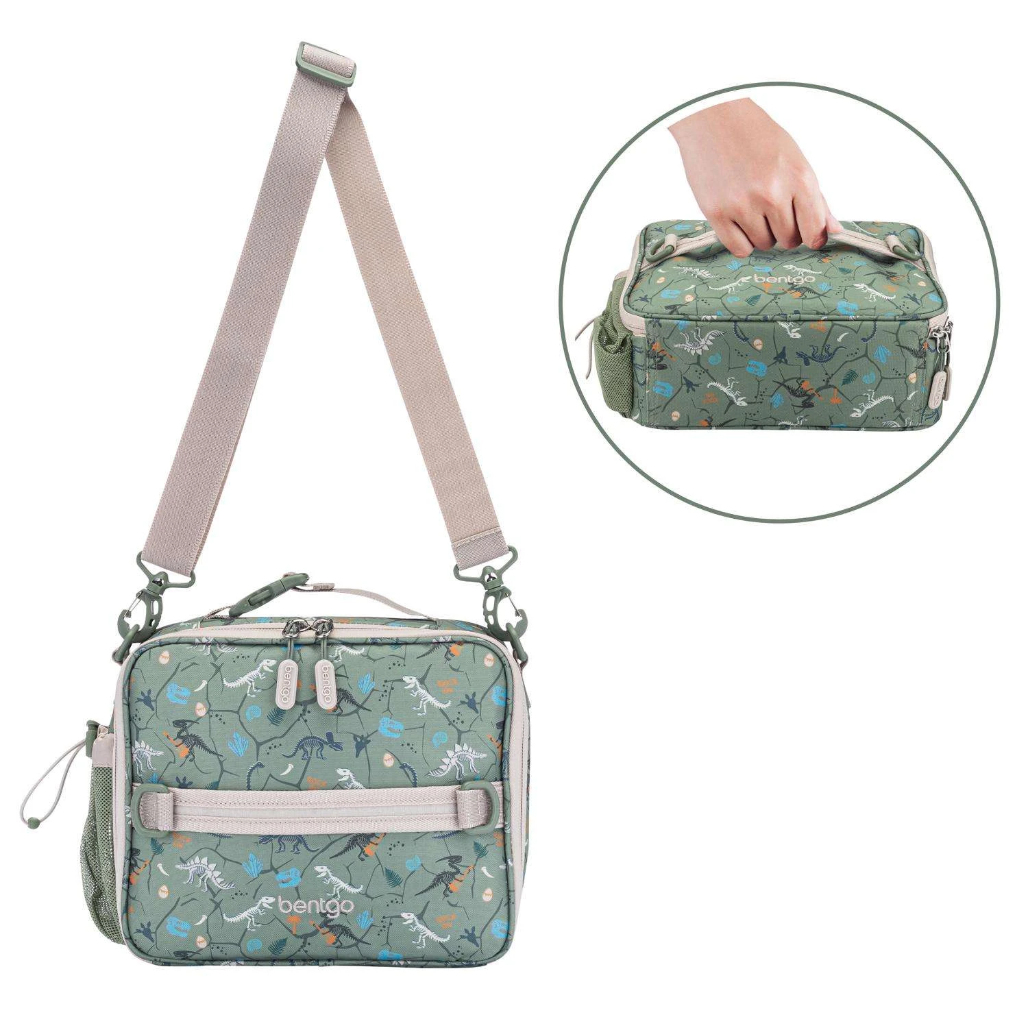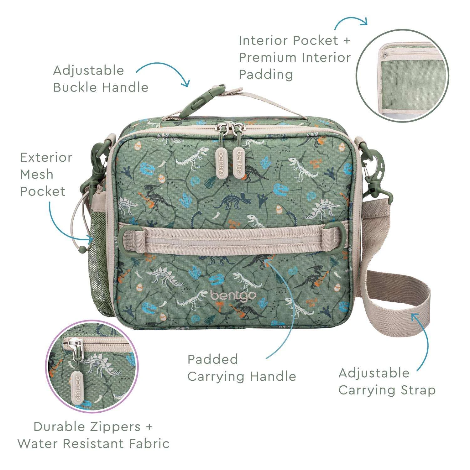 Bentgo Kids Prints Lunch Bag makes carrying your lunch fresh, easy, and colorful. This lightweight and durable double insulated lunch bag comes in a variety of colorful prints, giving kids a chance to express themselves in style. The new Bentgo lunch bag is ready to hold the healthiest treats along with your favorite Bentgo lunch box for a delicious lunch.Premium Materials & Insulation: Superior fabrics and detailed finishes make this high-quality lunch bag durable while the ultra-thick, non-toxic double insulation keeps meals fresher for longer while transporting food between school and activitiesLightweight and Durable: Made with high-quality non-toxic materials and YKK zippers, this new Bentgo lunch bag can hang with the most active child with a padded insulated lunch compartment and water-resistant exteriorMultiple Carrying Options: Adjustable straps, handles, and hooks provide versatile options to hold by hand/shoulder or attach the lunch bag to a backpack for hands-free transportBright and Playful: There is a style for every Bentgo kid, with multiple prints to choose from there’s a print for every personalityEasy to Clean: Simply use a damp cloth to wipe clean after each use