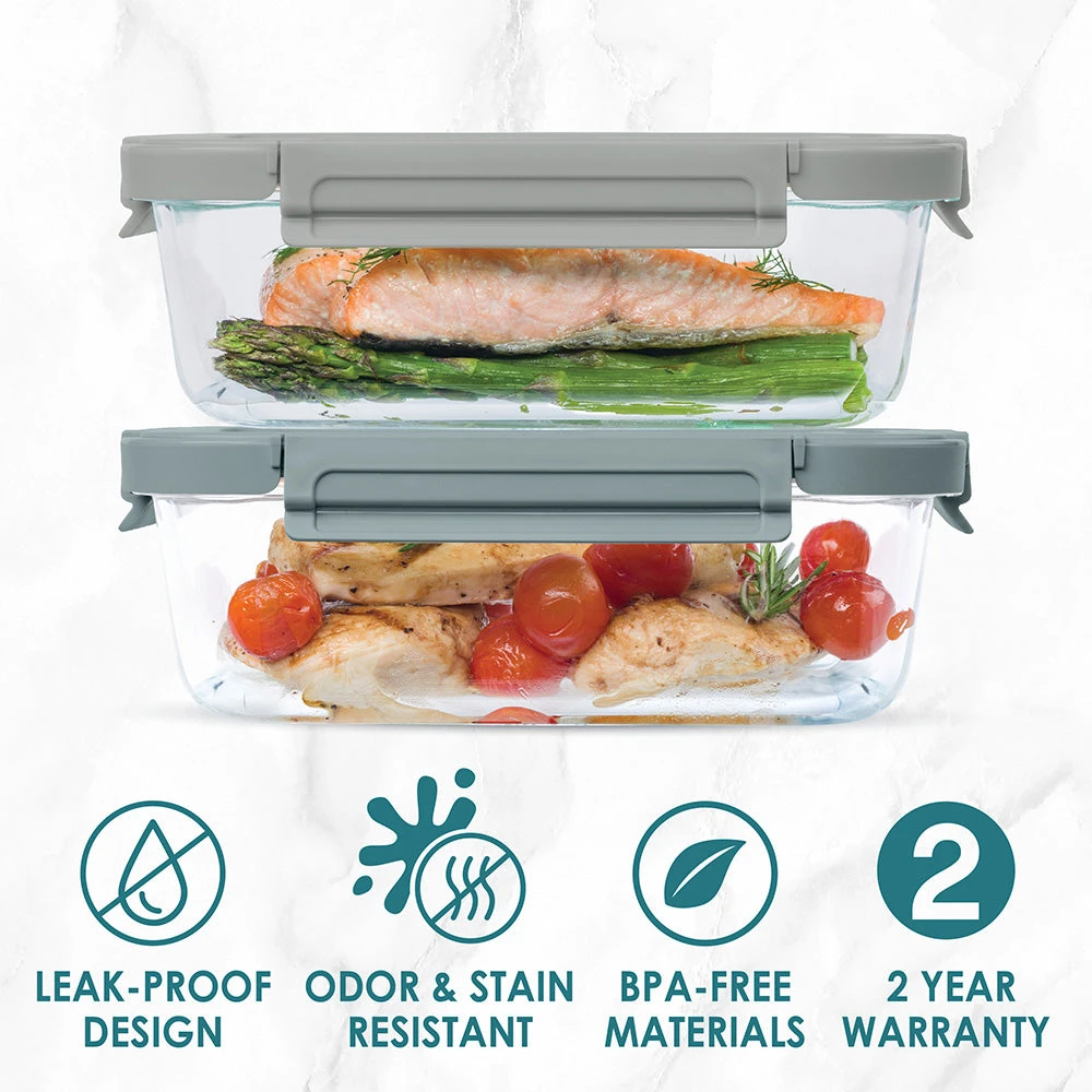 - SECURE LOCKING CLIPS: Keep your food fresh all day long with the easy-open locking clips that snap right into place. Along with the stain and odor-resistant design, each airtight food storage container will maintain the taste and smell of your food so it’s as delicious as when you made it.