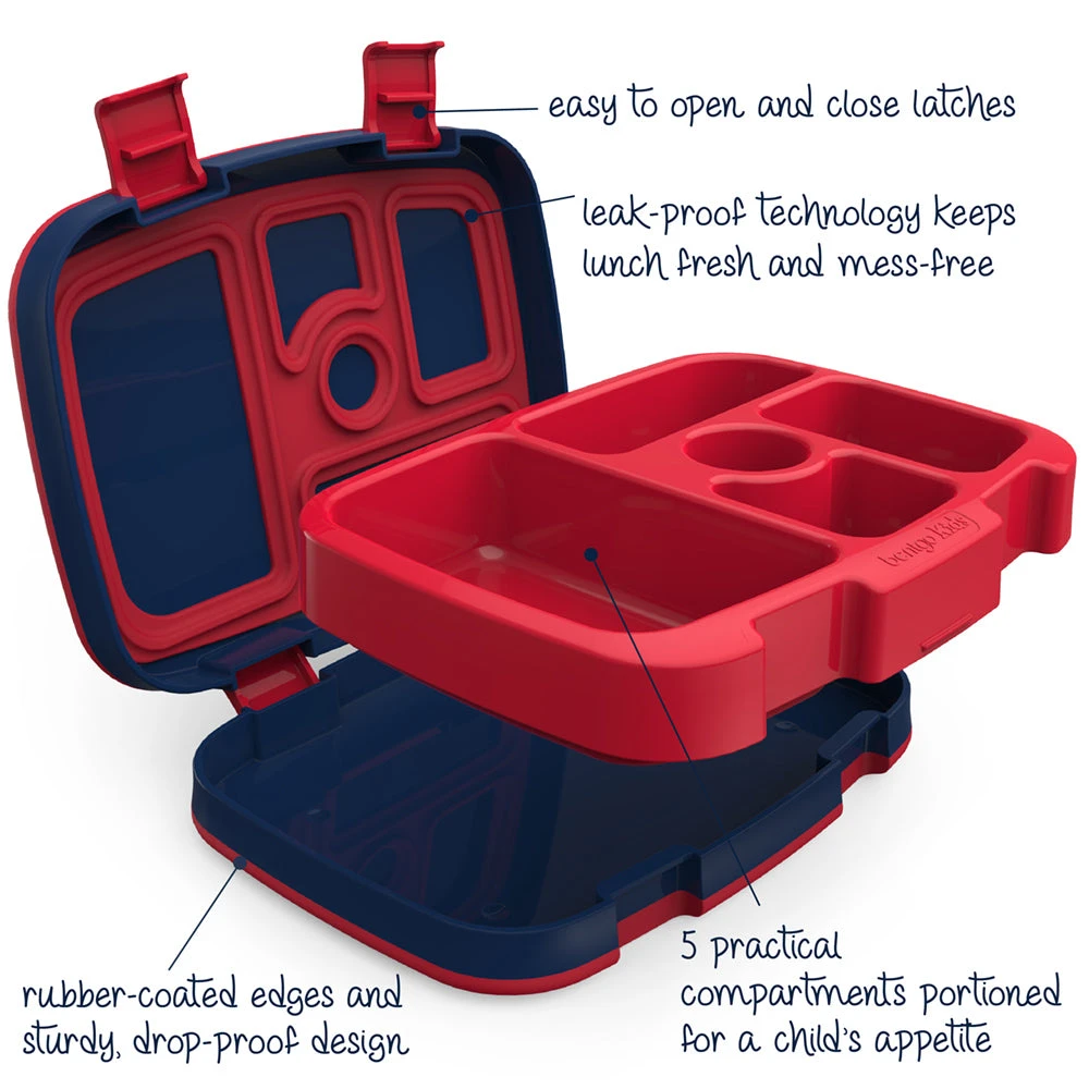 - Slim, Lightweight Design: Bentgo Kids Prints lunch box fits easily and securely into your child’s backpack to allow more room for school supplies and less weight on their back