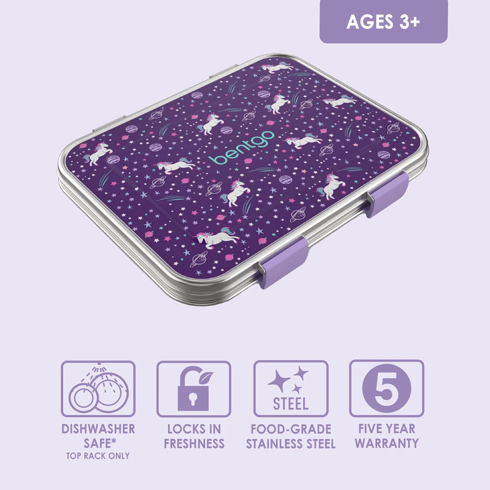 - SAFE & STYLISH: Protect the planet and look good while doing it! Made with high-quality stainless steel, this lunch box is a safe and sustainable alternative to plastic, plus it’s topped with a fun printed design to accompany your child’s personality.