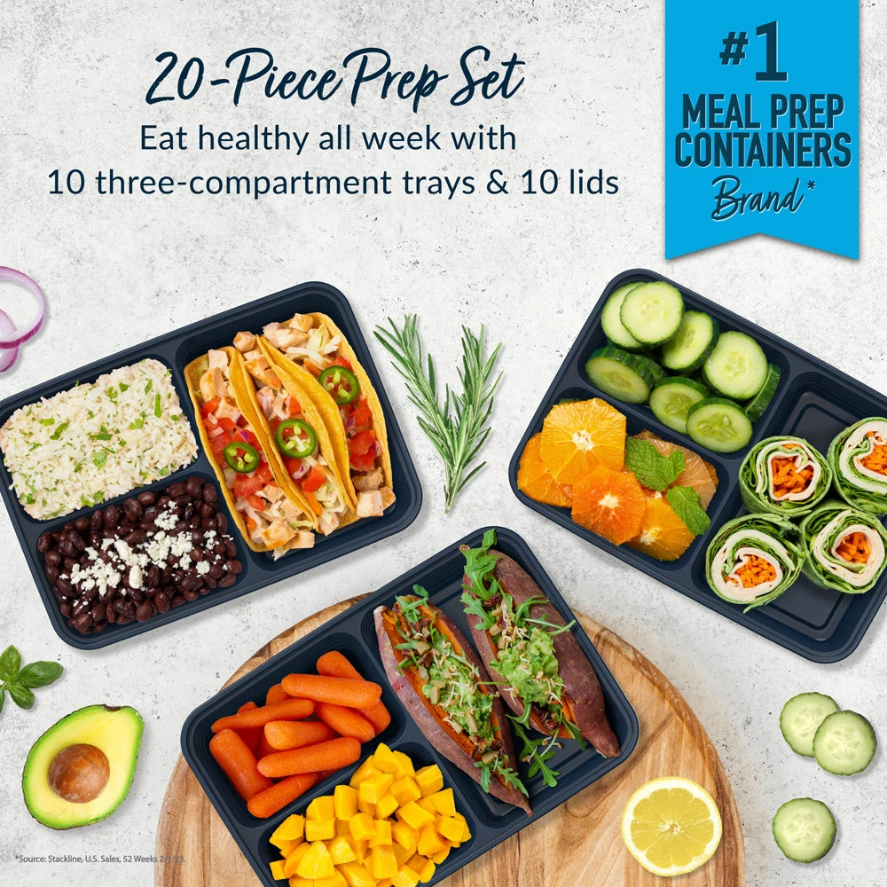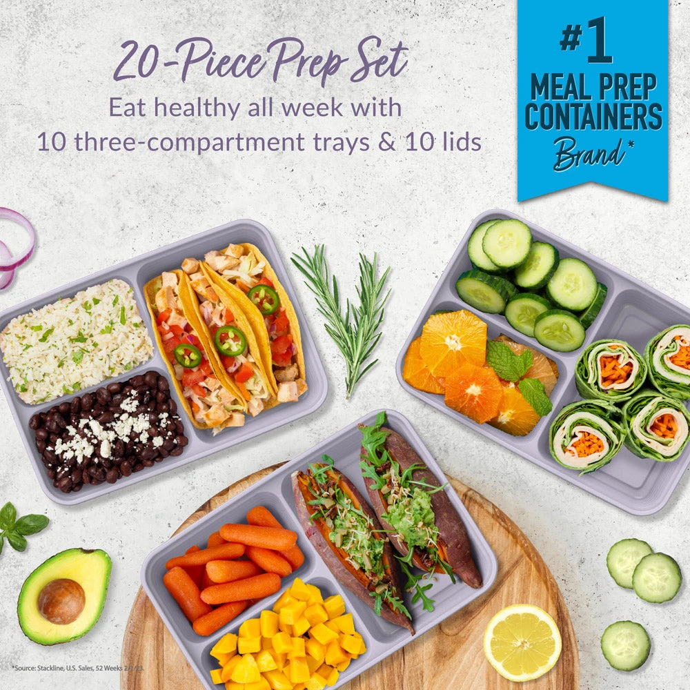 - WHAT YOU GET: 10 three-compartment trays, 10 custom-fit lids, electronic meal prep book, and caring customer support.