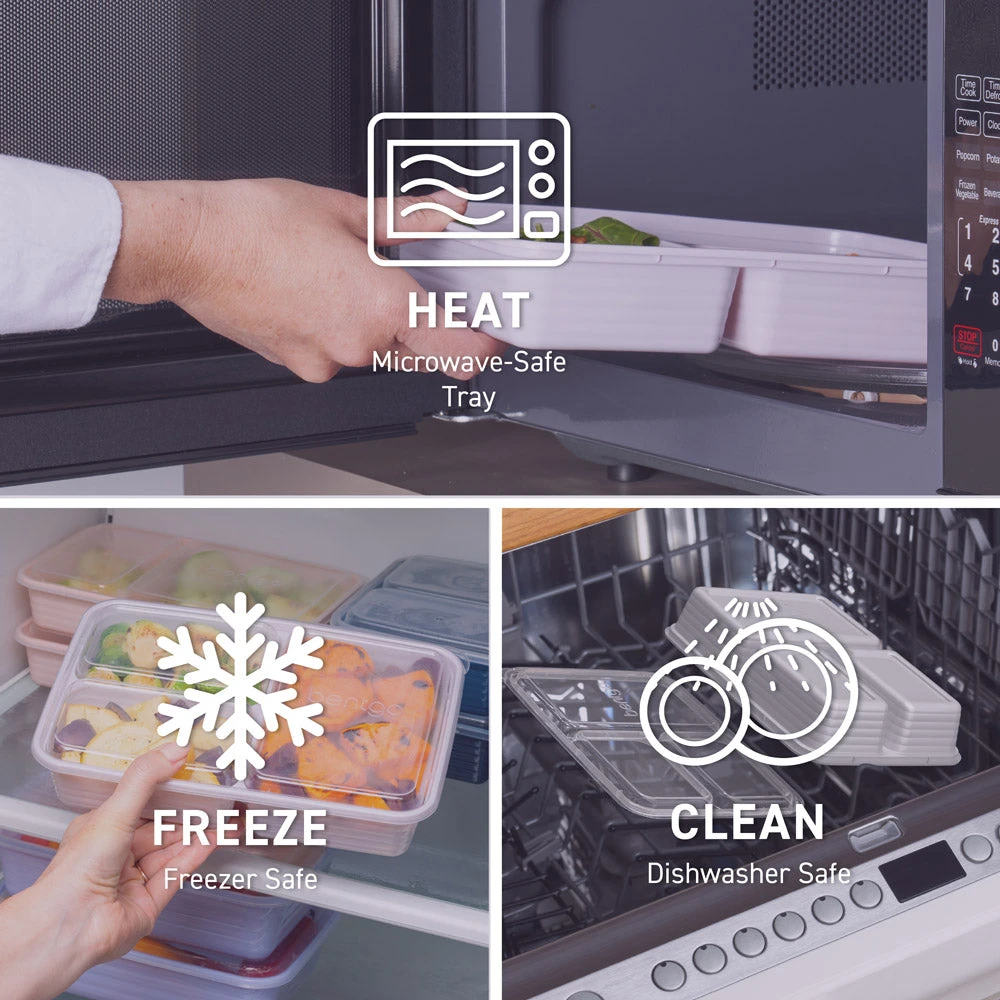 - EASY TO HEAT & CLEAN: Safely heat up your food straight from the freezer or refrigerator for warm, delicious meals and leftovers. Each meal prep container is both microwave and top-shelf dishwasher safe. Note: before microwaving, open the lid corner to allow steam to vent. For best results, hand wash to extend the life of the product.