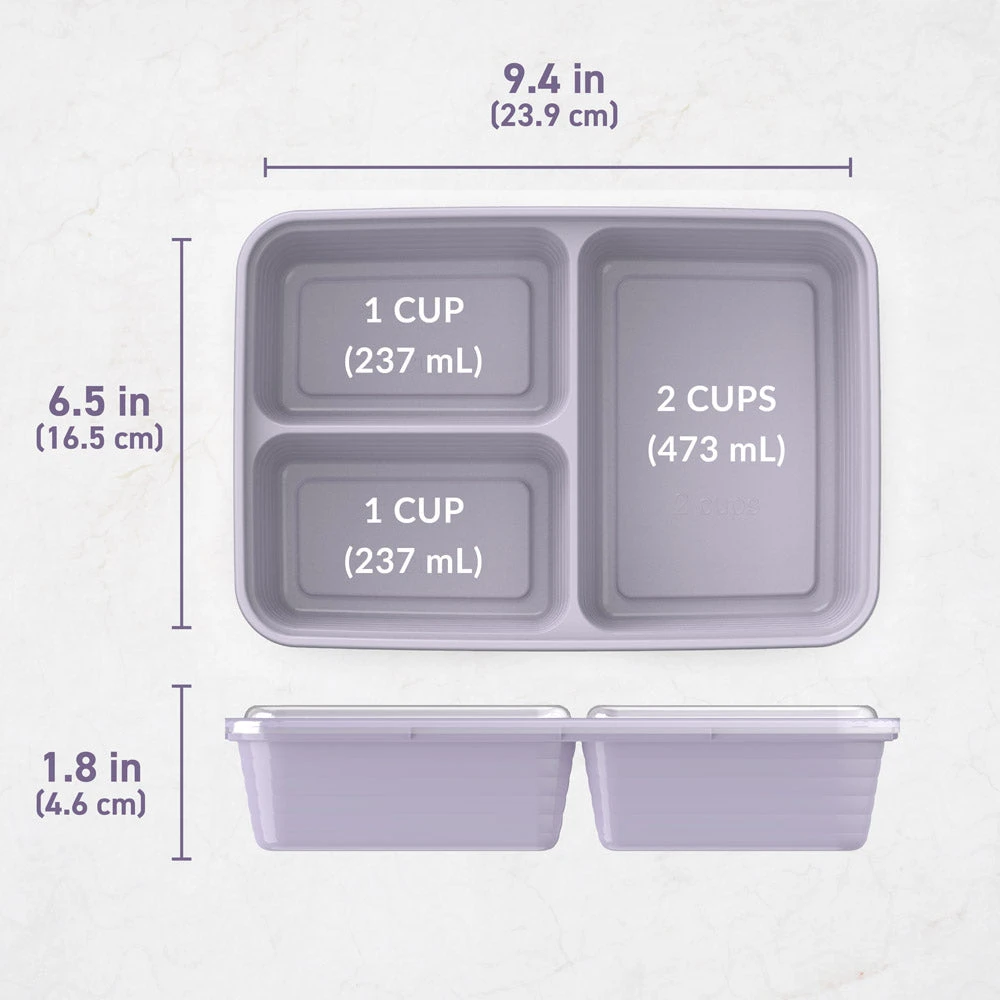 - PORTION CONTROLLED DESIGN: No need to measure your portions—volume is already embossed on the tray to help you with your healthy eating goals, diet, or weight loss plans. The custom-fit lids keep food fresh all day long and stack together neatly to save you space in your pantry. Plus, all the lids are clear, so you can easily identify what food is inside at a glance.