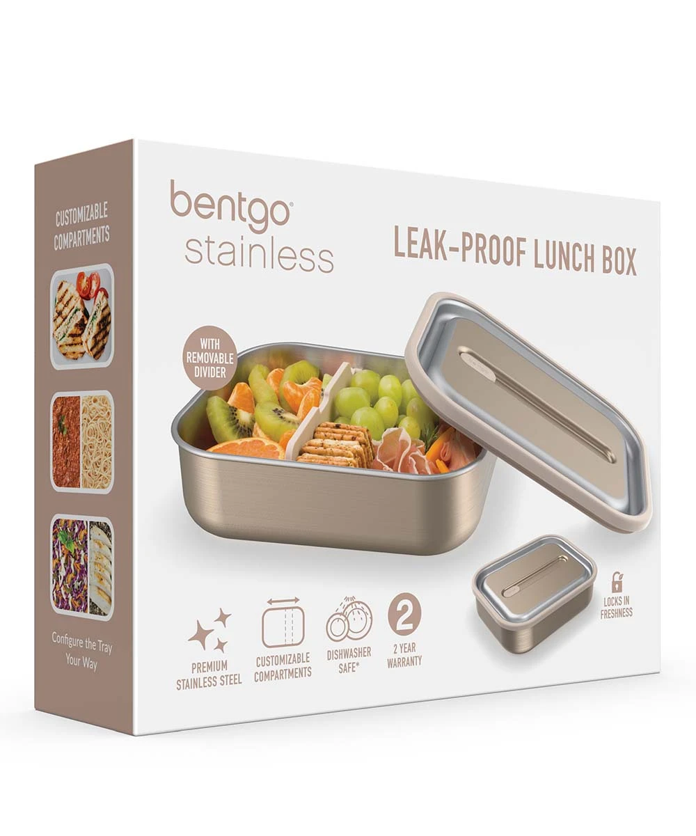 Take meals on-the-go with this stainless steel lunch box featuring a leak-proof lid, 5 cup capacity and a removable divider.