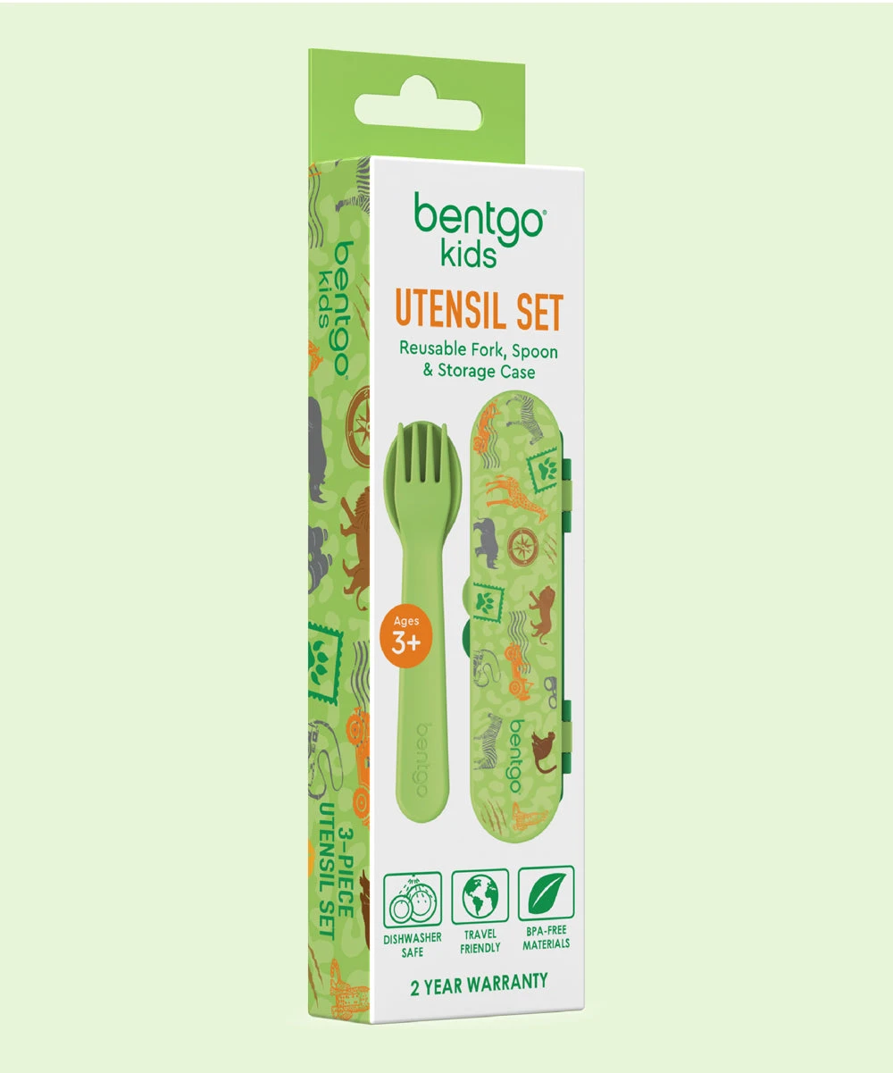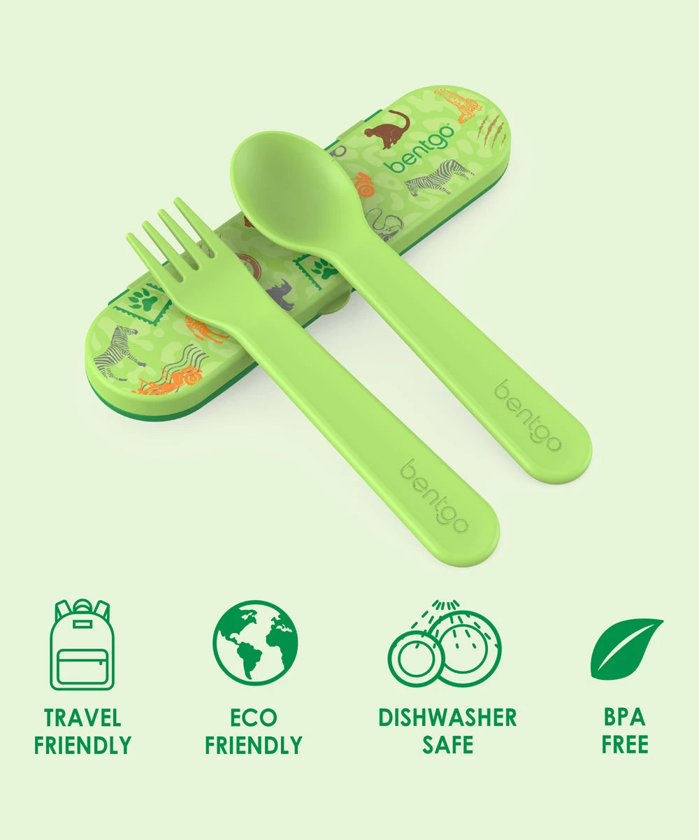 - Includes green spoon and fork and green safari case (three pieces total)